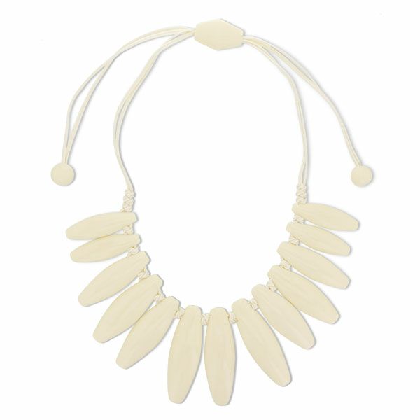 象牙風のデザインネックレス。優しい色味は様々なお洋服にも合わせやすく、紐を左右に引っ張るだけで簡単に長さが調整でき、その日のファッションや気分に合わせてお楽しみいただけます。