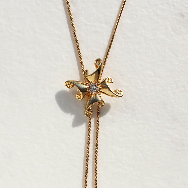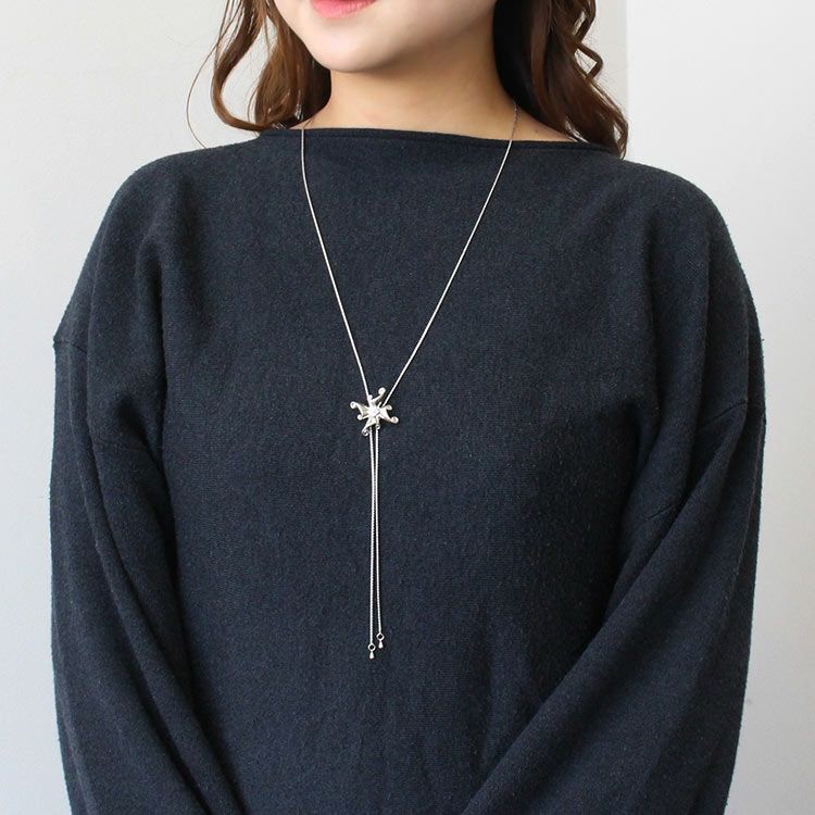 スネークチェーンを用いたY字タイプのロングネックレス。華やかなメタルパーツをスライドパーツのアクセントに配した、華やかさと使いやすさを備えたネックレスです。長さや左右のバランスを自在に調節できるので洋服に合わせてしっくりくるバランスで着用可能。長めにしてショートネックレスを重ねたり、パールとのレイヤード使いもおすすめ。カニカン(ロブスタークラスプ)が付いていますがかぶるだけで着用もできるので、つけ外しのしやすさも嬉しいポイントです。