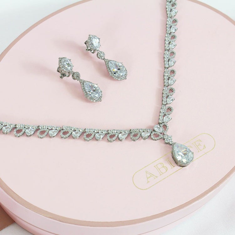 ドロップビジューキュービックジルコニアネックレス・イヤリングセット