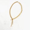 2種類のチェーンを使い、片方のチェーンにもう片方を通したスリップチェーンネックレス。垂らしたチェーンの先端には淡水パールをあしらい、エレガントなムードをプラス。デイリーからお呼ばれ、華やかなシーンにもぴったりです。