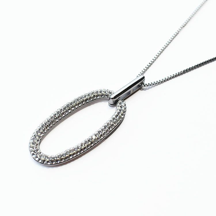 大人っぽいオーバルモチーフペンダントネックレス。チェコクリスタルの煌きが華やかでこなれ感を演出。デイリーはもちろん、セレモニーやオケージョン、オフィス使いにもご使用いただけます。 留め具はマグネット式のため着脱がスムーズ。