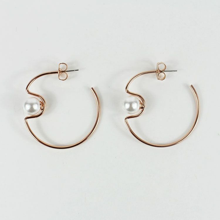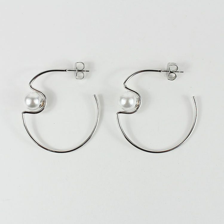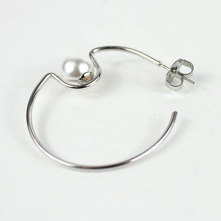 柔らかなカーブラインの中央に存在感のある一粒パールをあしらったパールフープピアス。軽やかでモダンなデザインは、シンプルな装いにつけるだけで、女性らしい華やかな雰囲気を印象付けてくれます。