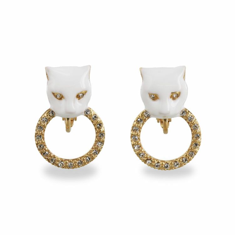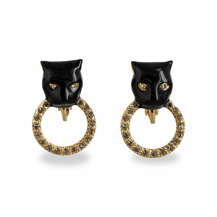 表情まで凛とした印象にしてくれそうな、艶やかなエナメルのパンサーモチーフが目を惹くラグジュアリーなイヤリング。