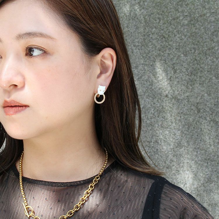 さりげなく取り入れられるサイズ感ながらもデザインのインパクトは抜群。シンプルな装いにモードなエッセンスを加えるアクセントとしてもオススメです。