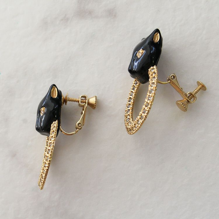 表情まで凛とした印象にしてくれそうな、艶やかなエナメルのパンサーモチーフが目を惹くラグジュアリーなイヤリング。