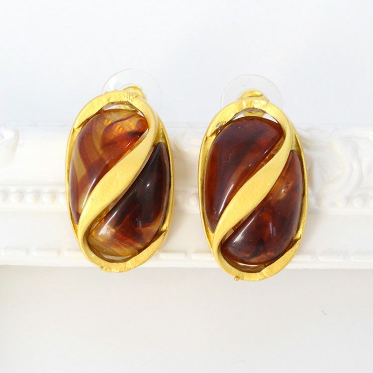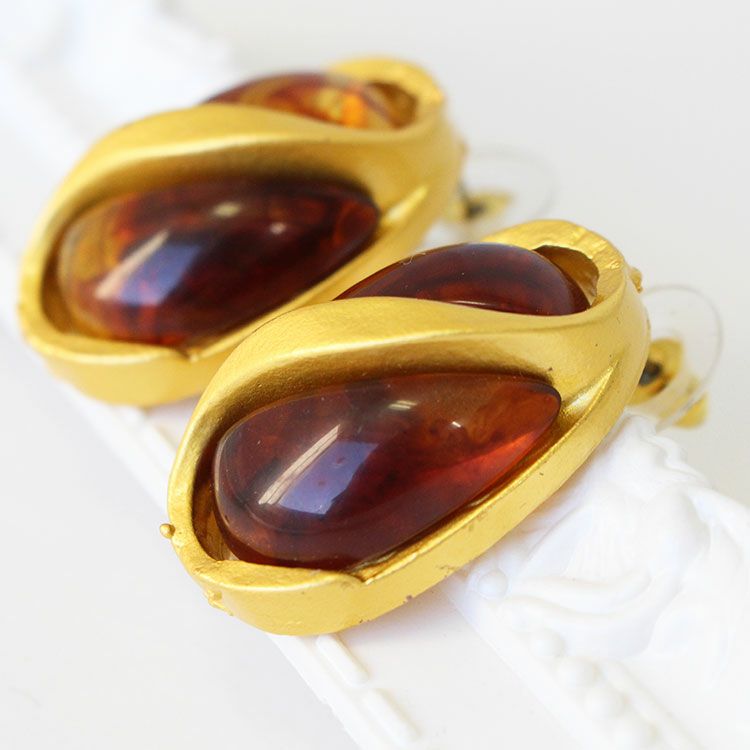 アンティークな配色が魅力のデザインピアス。遊びゴコロあふれる大ぶりのデザインはコスチュームジュエリーならでは。パーティーシーンや会食、外出時はもちろん、普段使いのコーディネートのアクセントにご利用いただけます。