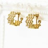 メタルメッシュに小さなパールが斜めに配置されたハーフフープイヤリング。 おしゃれで華やかなデザインは、女子会やお買い物などのデイリー使いから、パーティーシーンまで幅広くご利用いただけます。ステンレス素材を使用しているので変色しづらく季節を問わずつけやすいのが特徴です。