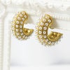 小さなパールが全面に配置されたハーフフープイヤリング。 おしゃれで華やかなデザインは、女子会やお買い物などのデイリー使いから、パーティーシーンまで幅広くご利用いただけます。ステンレス素材を使用しているので変色しづらく季節を問わずつけやすいのが特徴です。