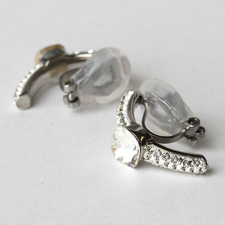 チェコクリスタルガラスがパヴェ状に敷き詰められたハーフフープイヤリング。中央の大きなビジューがより華やかさをアップしています。ステンレス素材を使用しているので変色しづらく季節を問わずつけやすいのが特徴。女子会やお買い物はもちろん、オフィス使いやオケージョンシーン、パーティーシーンにもおすすめです。