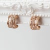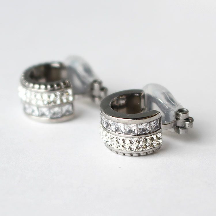 チェコクリスタルがパヴェ状に敷き詰められたハーフフープイヤリング。華やかなデザインは、デイリー使いしやすいやや小ぶりなサイズ感。女子会やお買い物はもちろん、オフィス使いやオケージョンシーン、パーティーシーンにもおすすめです。ステンレス素材を使用しているので変色しづらく季節を問わずつけやすいのが特徴です。
