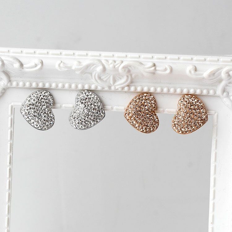 チェコクリスタルがパヴェ状に敷き詰められたハートモチーフのイヤリング。華やかで大人かわいいデザインです。ステンレス素材を使用しているので変色しづらく季節を問わずつけやすいのが特徴。女子会やお買い物はもちろん、オフィス使いやオケージョンシーン、パーティーシーンにもおすすめです。