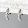 ハーフフープのデザインイヤリング。チェコクリスタルがパヴェ状に敷き詰められた華やかなデザイン。お顔まわりに煌めきをあたえてくれます。ステンレス素材を使用しているので変色しづらく季節を問わずつけやすいのが特徴。女子会やお買い物はもちろん、オフィス使いやオケージョンシーン、パーティーシーンにもおすすめです。