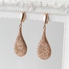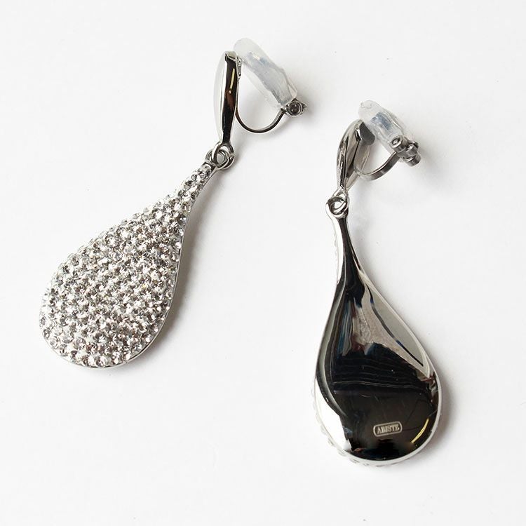 チェコクリスタルがパヴェ状に敷き詰められたドロップモチーフイヤリング。大ぶりで華やかなデザインは、カジュアルな女子会やお買い物、お食事はもちろん、パーティーシーンにもおすすめ。ステンレス素材を使用しているので変色しづらく季節を問わずつけやすいのが特徴です。
