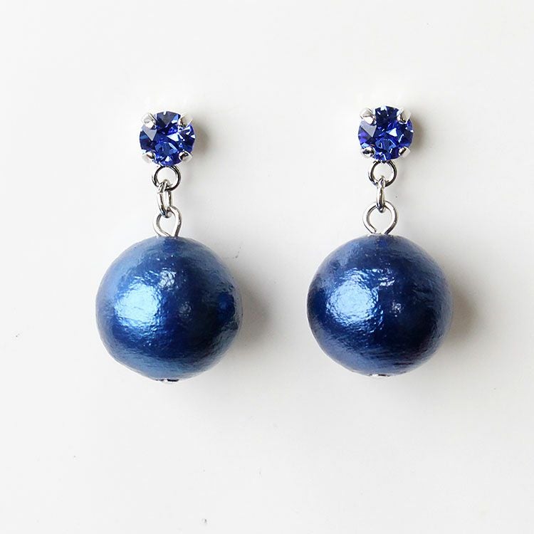 綿を圧縮して形成し、その上からパール塗装を施して作られるコットンパールは、繊維による細かい凹凸が特徴で、温かみのある質感を醸し出しています。驚くほどの軽さと、ひとつ一つが真円ではなく、少し歪んだ形状をしていることも、ナチュラルな魅力となっています。