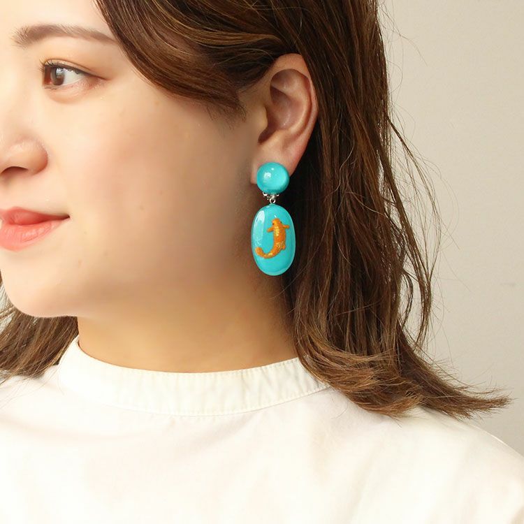 英語で『至福』を意味するBLISS。無上の喜びを得た時の感情をイメージし、印象深く、幸せを惹きつけるような魅力に溢れたデザインです。美しく印象的なターコイズブルーの鯉をデザインした、ハンドメイドの樹脂製イヤリング。