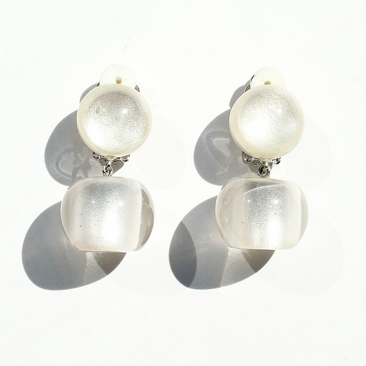 英語で『至福』を意味するBLISS。無上の喜びを得た時の感情をイメージし、印象深く、幸せを惹きつけるような魅力に溢れたデザインです。煌めくホワイトグリッターが美しいハンドメイドの樹脂製イヤリング。