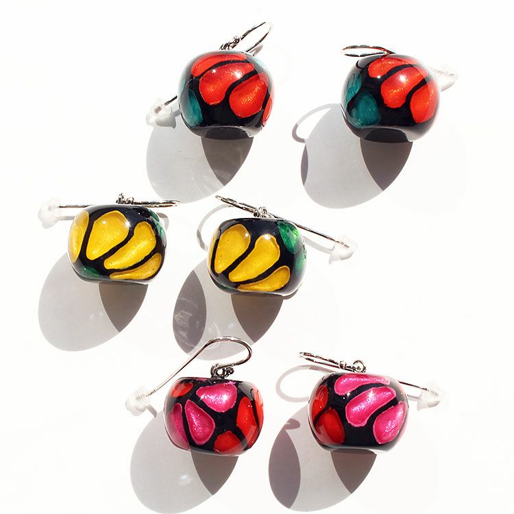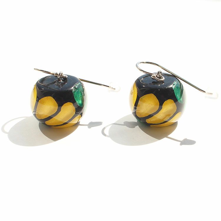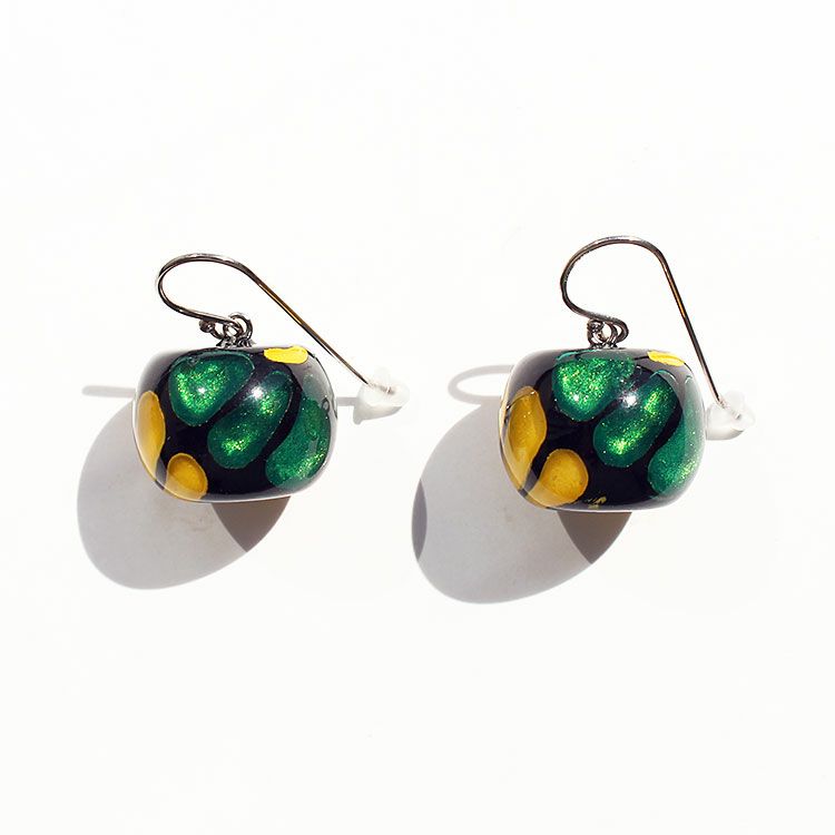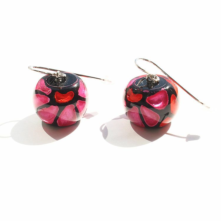 英語で『至福』を意味するBLISS。無上の喜びを得た時の感情をイメージし、印象深く、幸せを惹きつけるような魅力に溢れたデザインです。印象的なブラックの斑点模様が美しい、ハンドメイドの樹脂製フックピアス。