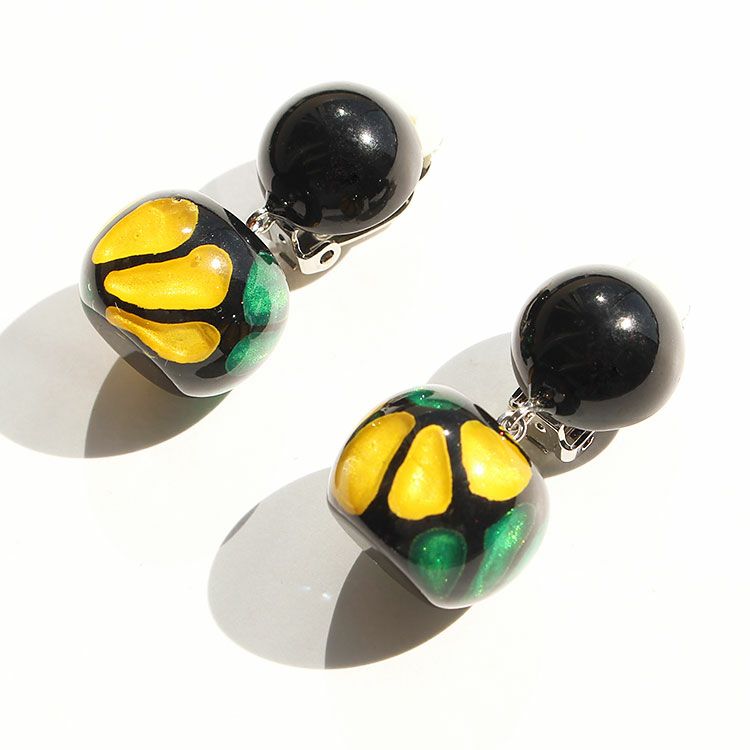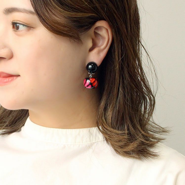英語で『至福』を意味するBLISS。無上の喜びを得た時の感情をイメージし、印象深く、幸せを惹きつけるような魅力に溢れたデザインです。印象的なブラックの斑点模様が美しい、ハンドメイドの樹脂製イヤリング。