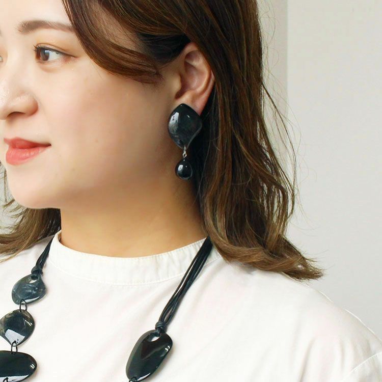 上質な樹脂、ポリエステルレジンの特性を活かし、ガラスのような質感を再現しつつも、軽くてつけやすいことで人気を博しています。肌に触れる部分に金属を使用していないため、アレルギーの方でも安心してお使いいただけます。