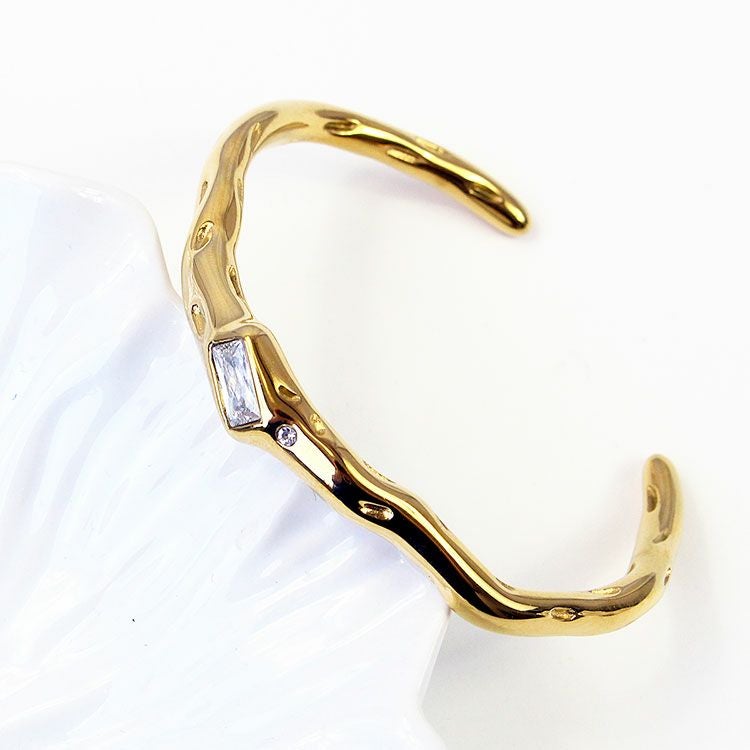 パヴェクリスタルガラスアシンメトリーオープンバングル