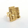 他につけるアクセサリーともコーディネートしやすいシンプルなゴールドの地金調デザインながら、1点つけるだけで華やぎがうまれる大ぶりサイズ。アーム部分が細いので普段大ぶりリングを着けない方やむくみやすい方にも違和感なく着けられます。