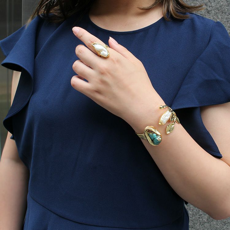ターコイズ&淡水パールバングル・リング2点セット/4230018G-2