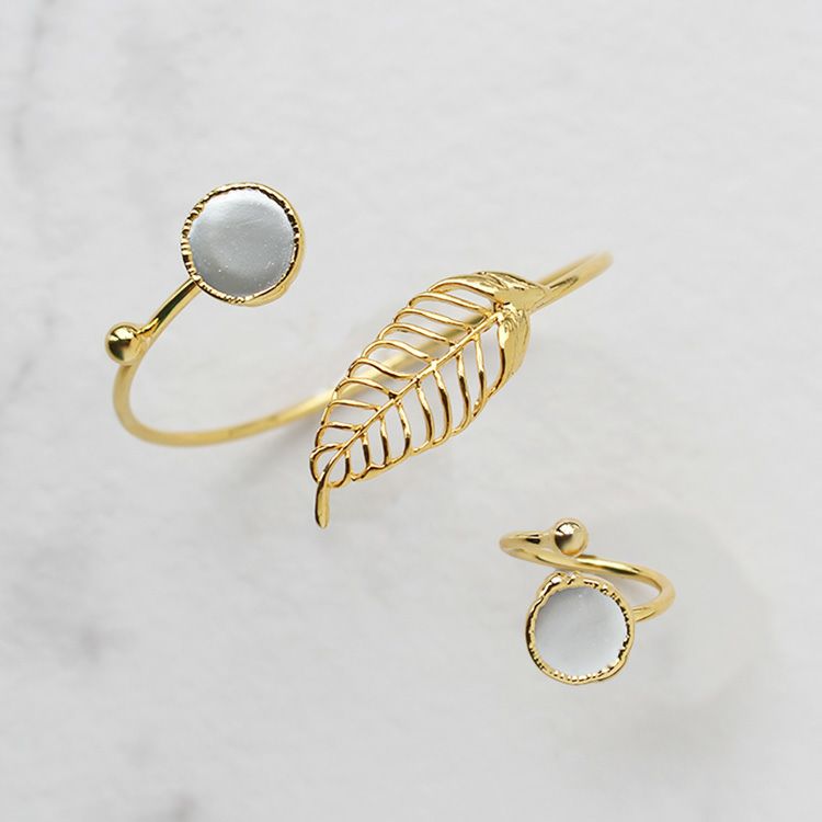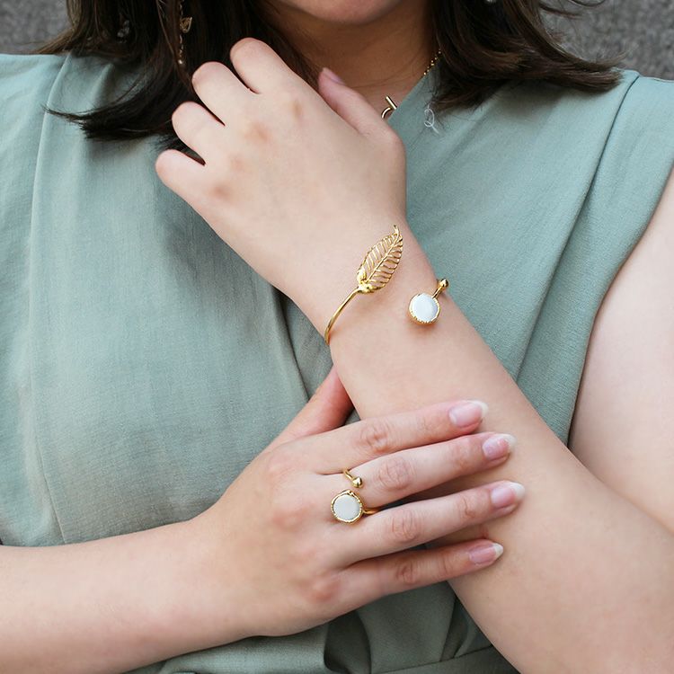 リーフモチーフアゲートバングル・リング2点セット/4230022G-2