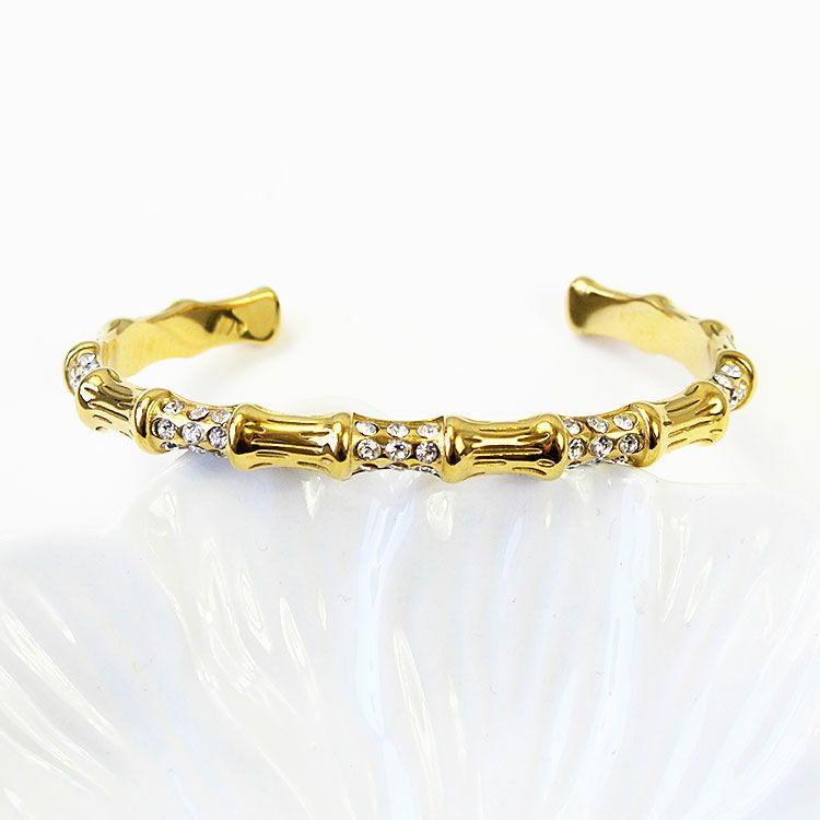 バンブーモチーフ×クリスタルガラスオープンバングル