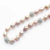 優しいライトパープル系のバロックパールにクリスタルガラスボールをあしらった華やかで上品な淡水パールのネックレス、ブレスレットの2点セット。淡水パールならではの照りの美しさが魅力です。花嫁がつけるブライダルアクセサリーとしてはもちろん、結婚式のお呼ばれアクセサリーや、パーティーシーン、会食、外出時、デイリーなど、幅広くご利用いただけます。