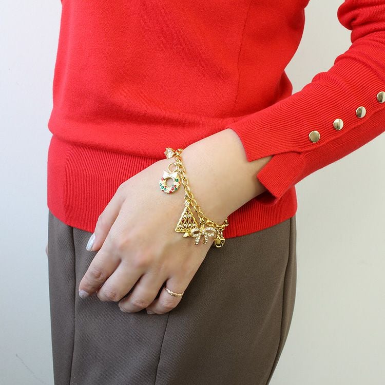 クリスマスモチーフやリボン、ハート、月など様々なチャームが揺れる、ホリデームードたっぷりのアイテム。