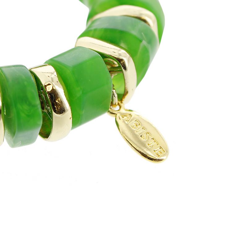 グリーン×ゴールドで手首を華やかに!ゴムタイプなので着脱も簡単です。
