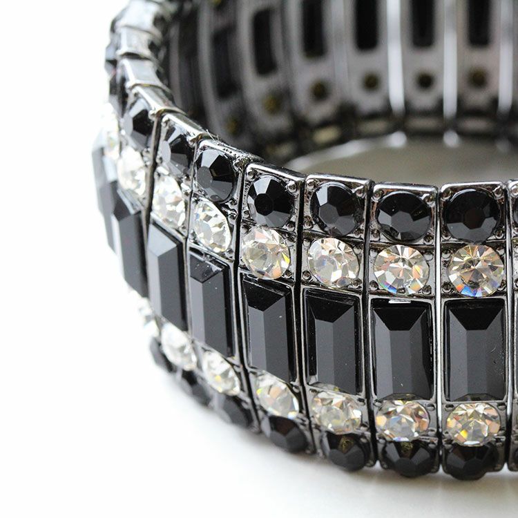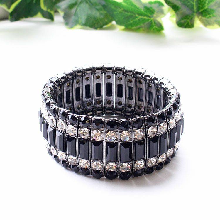 チェコクリスタルが煌めく大人カッコいいデザインブレスレット。ゴム式なので着脱もスムーズです。