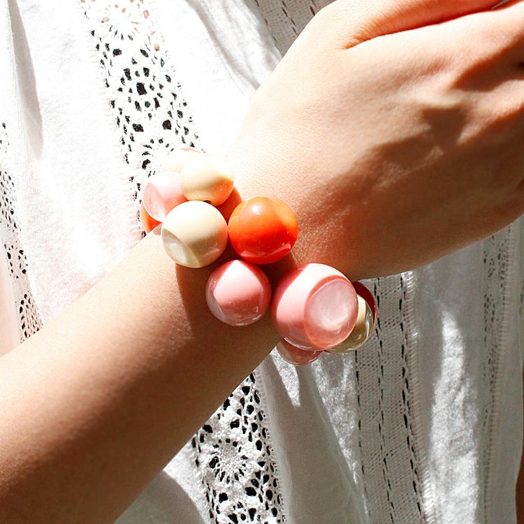 “球”を意味する名前を持つシリーズ。着けているだけでハッピーな気分になれそうな、カラフルでポップなデザインが特徴です。それぞれのパーツは2層になっているのもポイント。こだわりのハンドメイドアクリルジュエリーならではの魅力をお楽しみください。