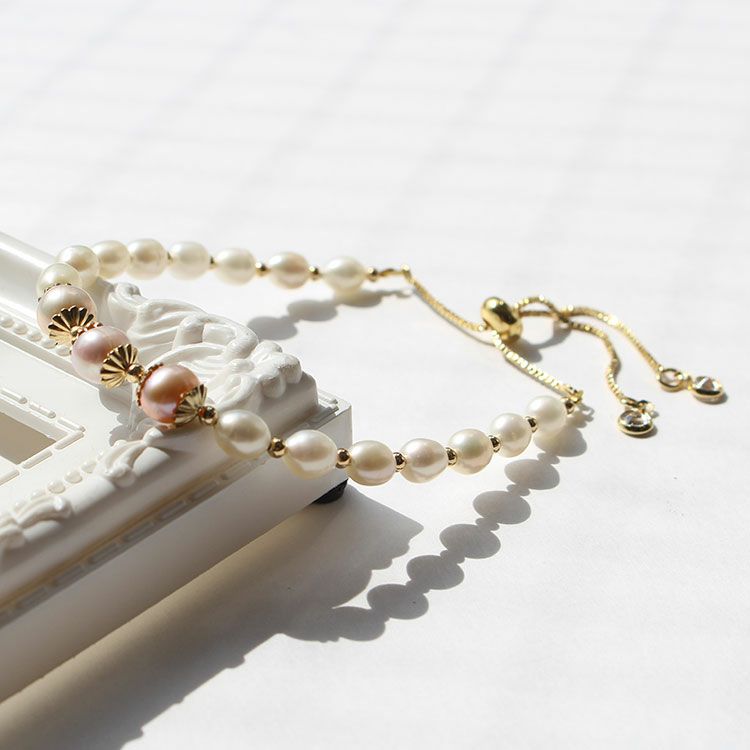 華やかな淡水パールブレスレット。やわらかくなめらかな輝きを放ち、一粒一粒表情の異なる淡水パールは、唯一無二の存在。自然の美しさが凝縮された輝きをお楽しみいただけます。カジュアルからフォーマルまでさまざまなシーンでご利用いただけます。