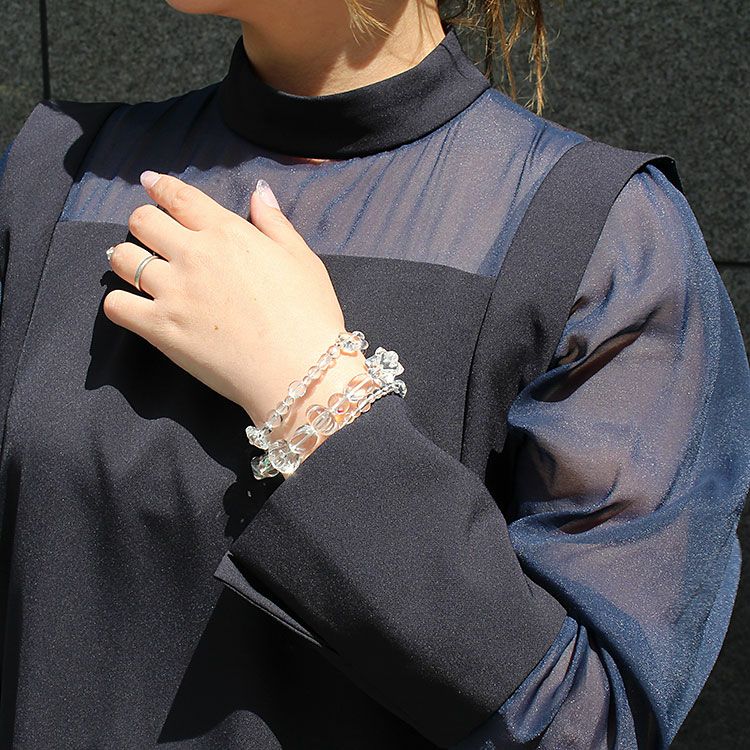 それぞれ一連、二連、重ね付けなど、お好みでお楽しみいただけます。ゴムタイプなので装着もスムーズです。