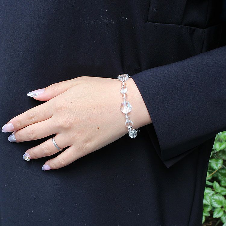 クォーツの中でも無色透明で純度の高い天然クォーツを使用したロック・クリスタル(本水晶)の3連ブレスレット。