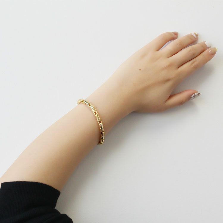 シンプルながらも個性のあるチェーンブレスレット。合わせやすくおしゃれ見えするので使い勝手の良いデザインです。