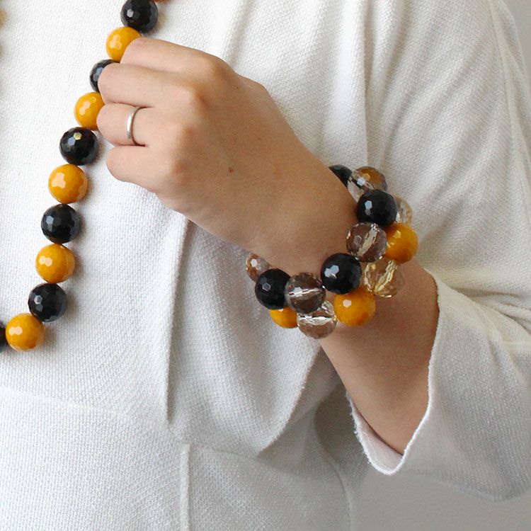 アクリルビーズを組み合わせた存在感あるブレスレット。着けた瞬間しっくりと馴染みオシャレ見えするデザインが魅力です。ゴムタイプのため着脱がスムーズです。