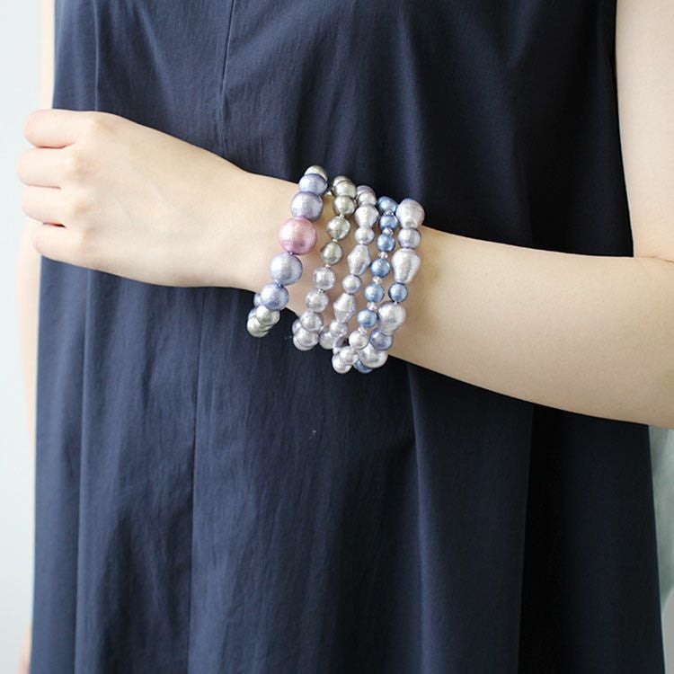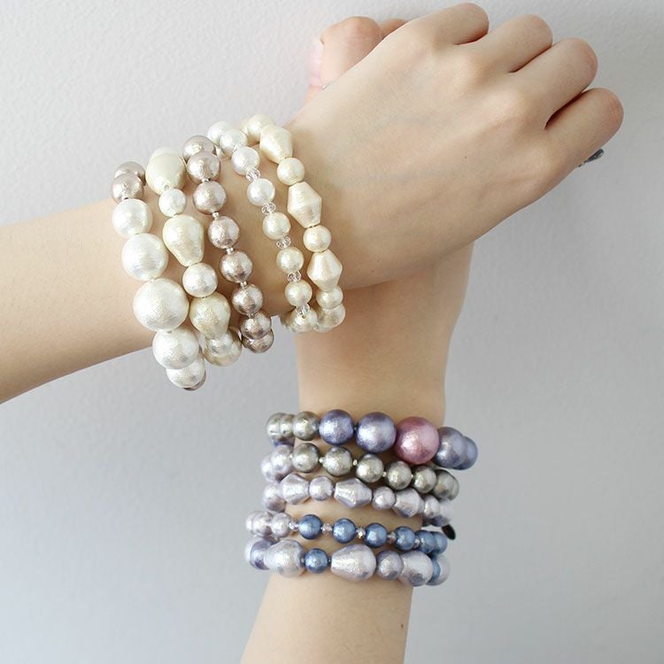 日本製コットンパールブレスレット5本セット/4020048-