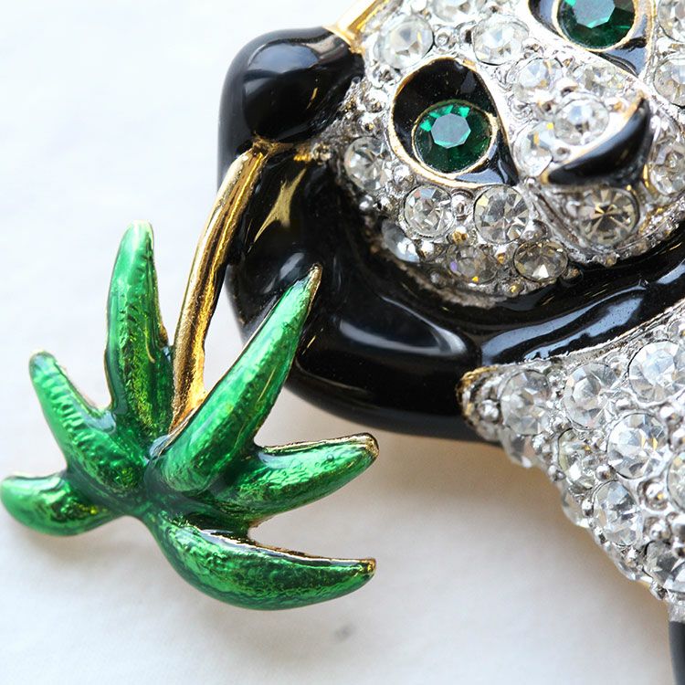 大好きな笹を手にしたパンダモチーフのヴィンテージブローチ。ヴィンテージならではの風合いと品質の高さにより、可愛らしくも風格のあるパンダを身に着ければ、大人ならではの遊び心を楽しめそう。
