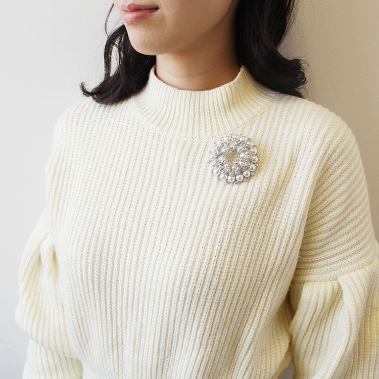 キュービックジルコニアが煌めく上品なブローチ。お花のようにあしらわれたパールがフェミニンなアイテムです。