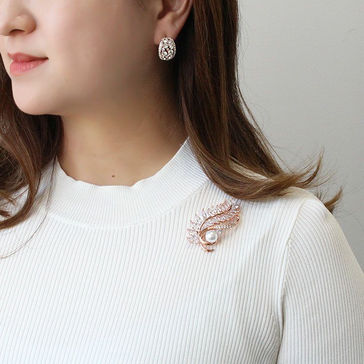 キュービックジルコニア×パールフェザーブローチ