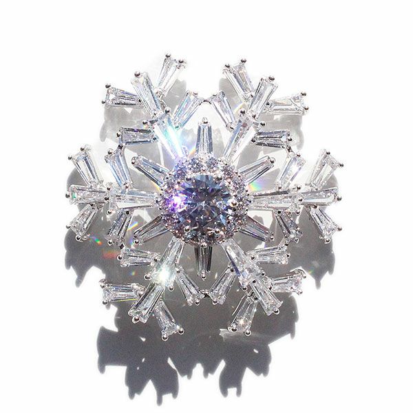 雪の結晶の中心に大きなキュービックジルコニアが煌めくブローチ。