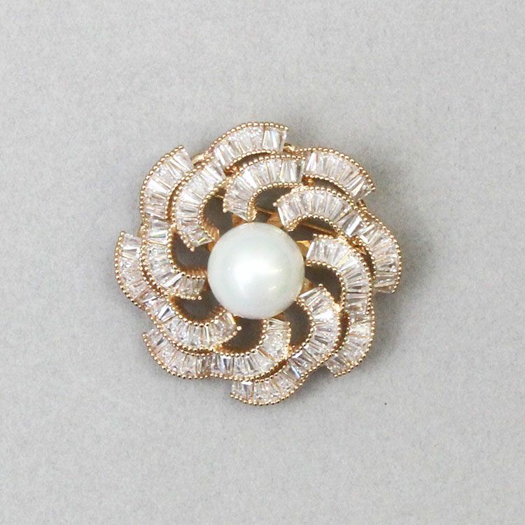キュービックジルコニア×パールデザインブローチ/5181073