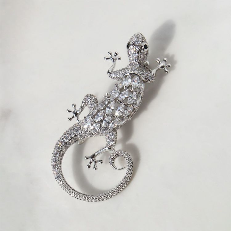 ちょっぴり気の抜けた、なんだか楽しそうな表情が愛らしいゲッコー(ヤモリ)をモチーフにしたユニークなブローチ。ヤモリは「家守」と日本では広く知られていますが、「知恵」「家の繁栄」「富の象徴」「復活」を意味すると言われ、世界中のあちこちで幸運のシンボルとして親しまれているラッキーモチーフです。