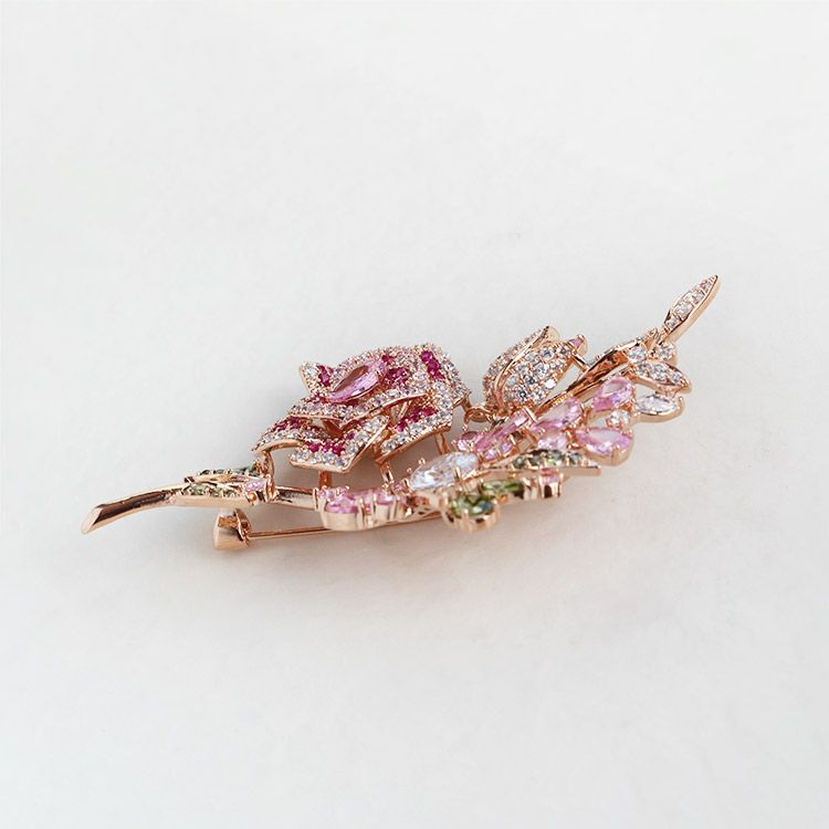 ローズモチーフキュービックジルコニアブローチ