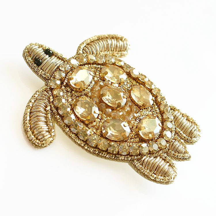 繊細なビーズ刺繍が施されたタートルビーズブローチ。軽量のため、お洋服はもちろん、スカーフ留めやニット帽、マフラー、バッグなど、どんなアイテムでもご使用いただきやすいのが特徴です。