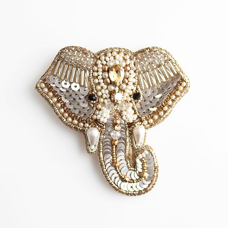 繊細なビーズ刺繍が施されたエレファントビーズブローチ。軽量のため、お洋服はもちろん、スカーフ留めやニット帽、マフラー、バッグなど、どんなアイテムでもご使用いただきやすいのが特徴です。