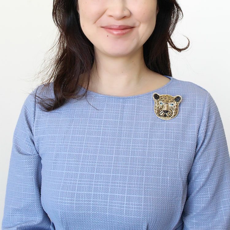繊細なビーズ刺繍が施されたチータービーズブローチ。軽量のため、お洋服はもちろん、スカーフ留めやニット帽、マフラー、バッグなど、どんなアイテムでもご使用いただきやすいのが特徴です。