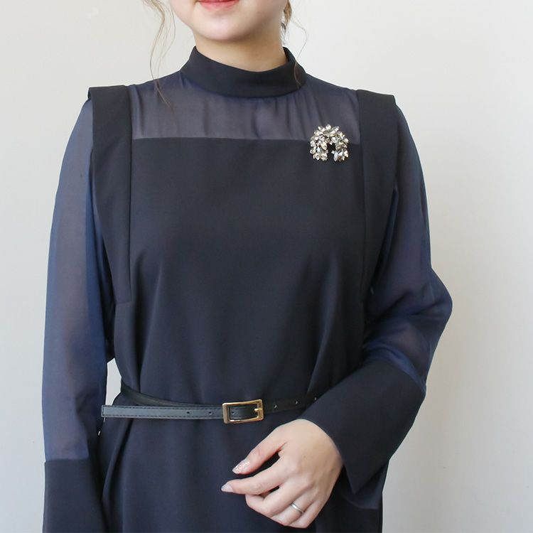 品良く華やかなカラーのストーンを用いたビジューブローチ。ジャケットやスーツ、コートの襟元のほか、マフラーやストールの飾り、シャツの襟の中央に付けるのもおすすめです。